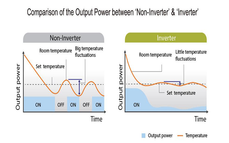 Traditional air conditioners use non-inverter technology, while the compressor has only two states: "on" and "off". Once the indoor temperature reaches the set level, the compressor will shut down; when the temperature deviates from the set level, the compressor will restart.